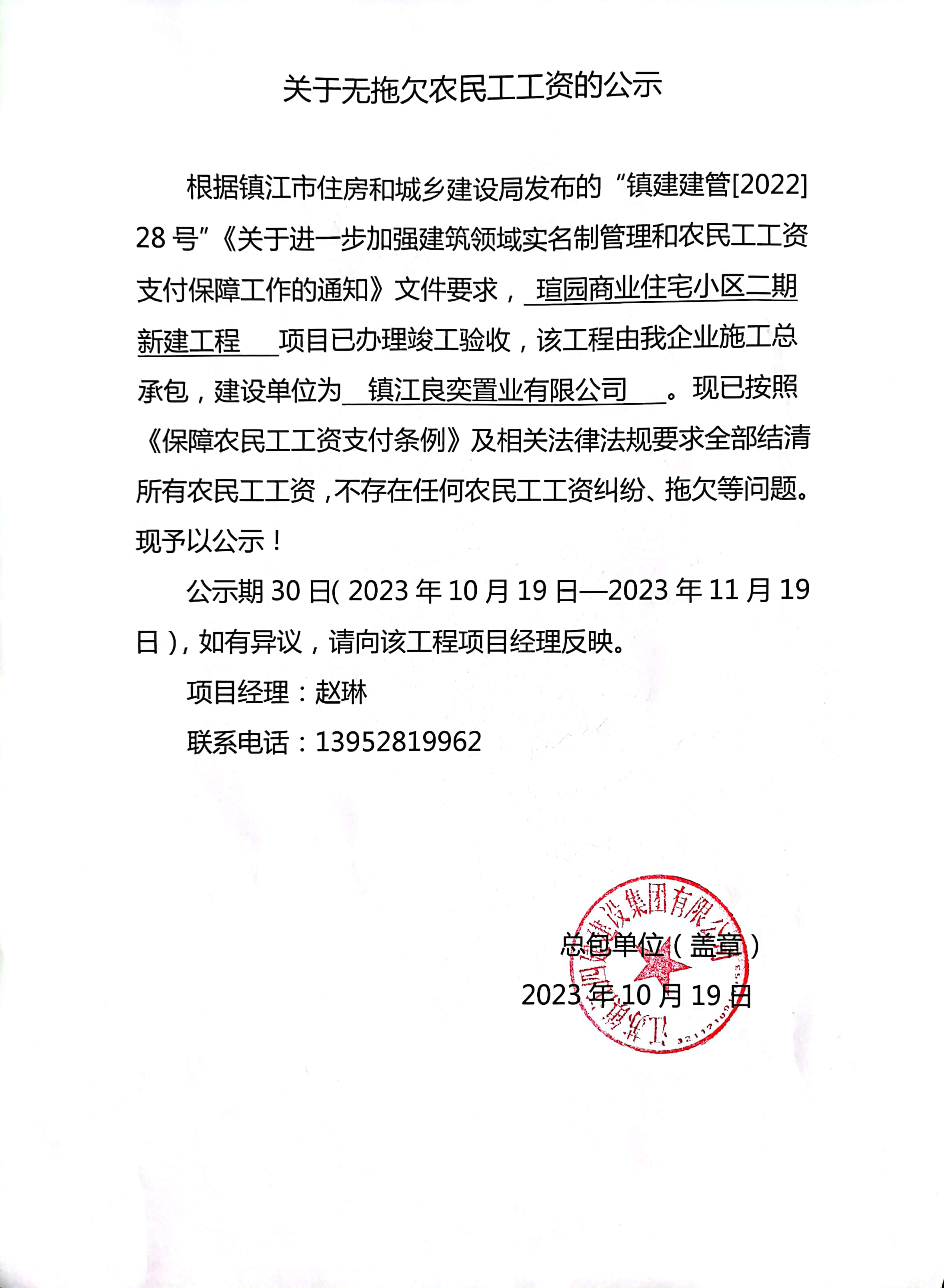 關(guān)于無拖欠農(nóng)民工工資情況的公告